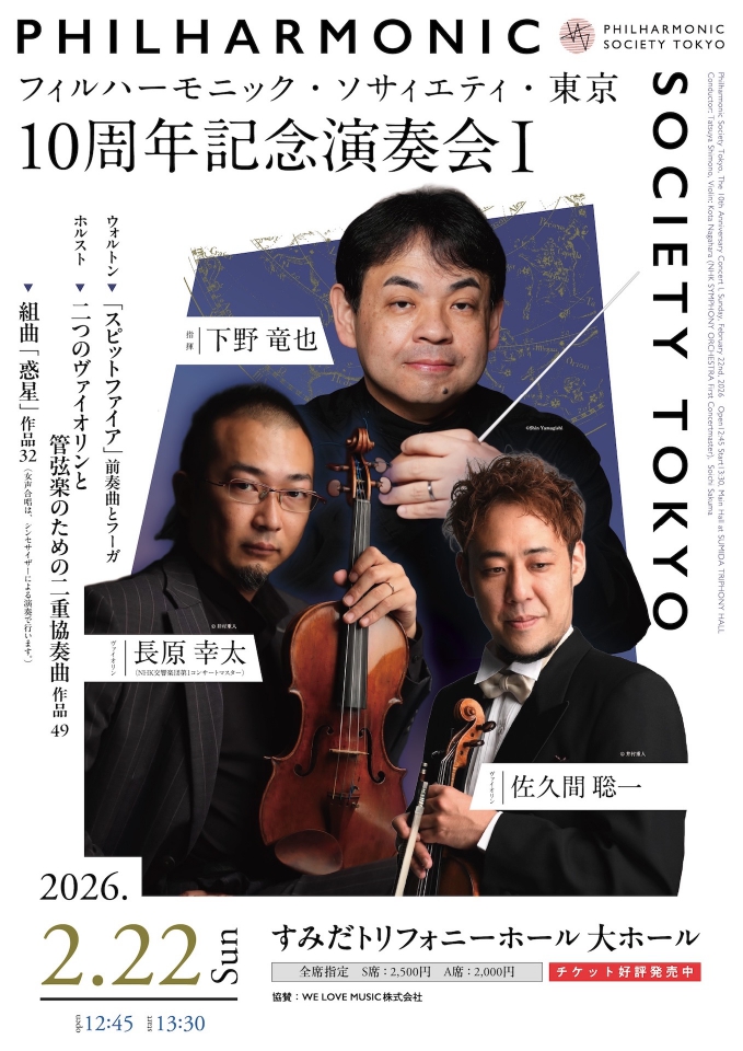 長原幸太、佐久間聡一(ヴァイオリン)、フィルハーモニック・ソサイエティ・東京(管弦楽)